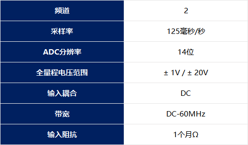 – 快速采样速度:125MSPS,适用于两个同时输入