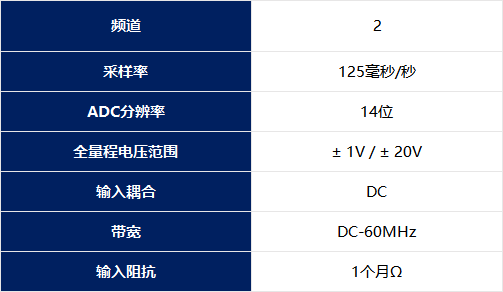 – 快速采样速度:125MSPS,适用于两个同时输入