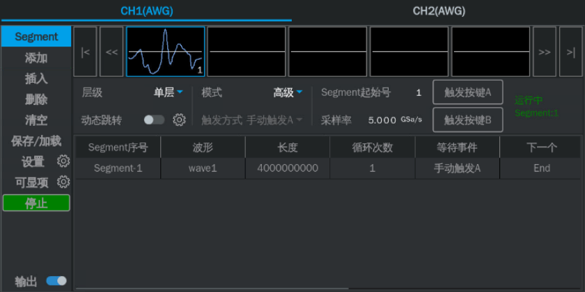 SDG8000A系列每通道最大存储深度达4G样本点,即使在最高采样率下也能支持长达800 ms的波形回放。同时,该系列提供强大的多层级波形序列播放功能,包括:Segment、Sequence、Scenario,仪器内置196种任意波形,涵盖数学、工程、医疗电子、调制等领域,用户可根据需求直接调用或自定义编辑波形文件,从而快速适应各种测试任务。