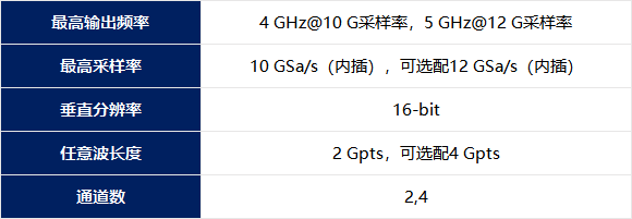 • 2/4通道,最高输出频率4 GHz(10 GSa/s采样率)/ 5 GHz(12 GSa/s采样率)