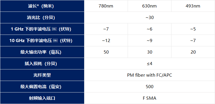 该器件具备宽带工作特性与低半波电压(V_pi),采用光纤耦合结构,实现低光学插入损耗与高功率承受能力。