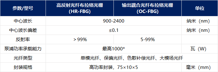 *注:功率承载能力取决于光栅长度。当功率>5W时,强烈建议采用低折射率重涂覆工艺。本公司对多数高功率光纤布拉格光栅不提供质保服务。可根据客户需求提供其他定制规格。