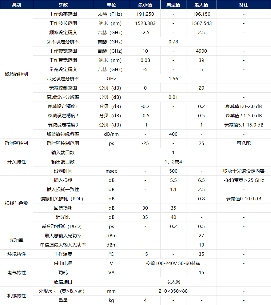 • 基于LCOS技术,实现高分辨率的波长与带宽可调控制,波长/带宽设定分辨率达0.78GHz