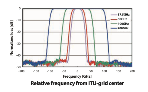 • 滤波器边缘斜率陡峭,典型值为400 dB/nm