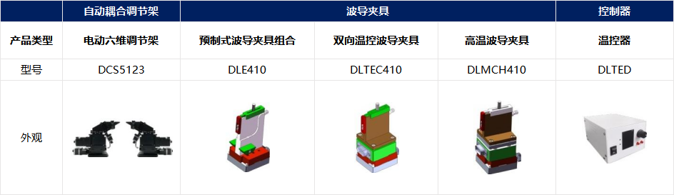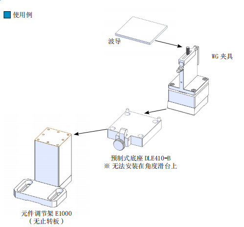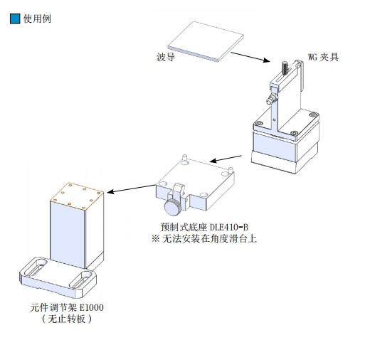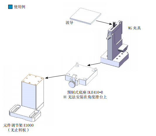 ▪ 组合专用预设基座 DLE410-B 与波导座 DLE400 的夹具组合