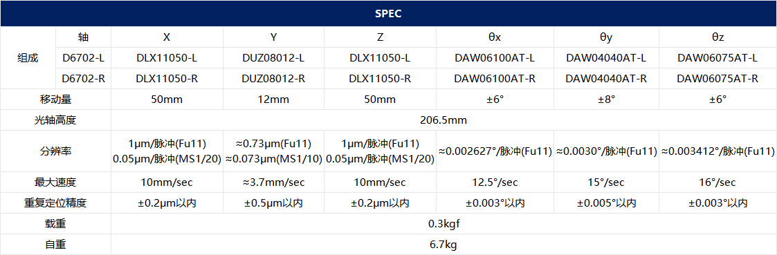 ▪ 在 XYZ 直动 3 轴与 ΘxΘyΘz 轴移轴 3 轴上加入自动滑台的组合。