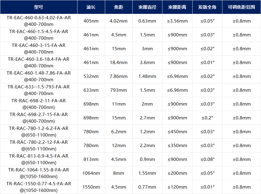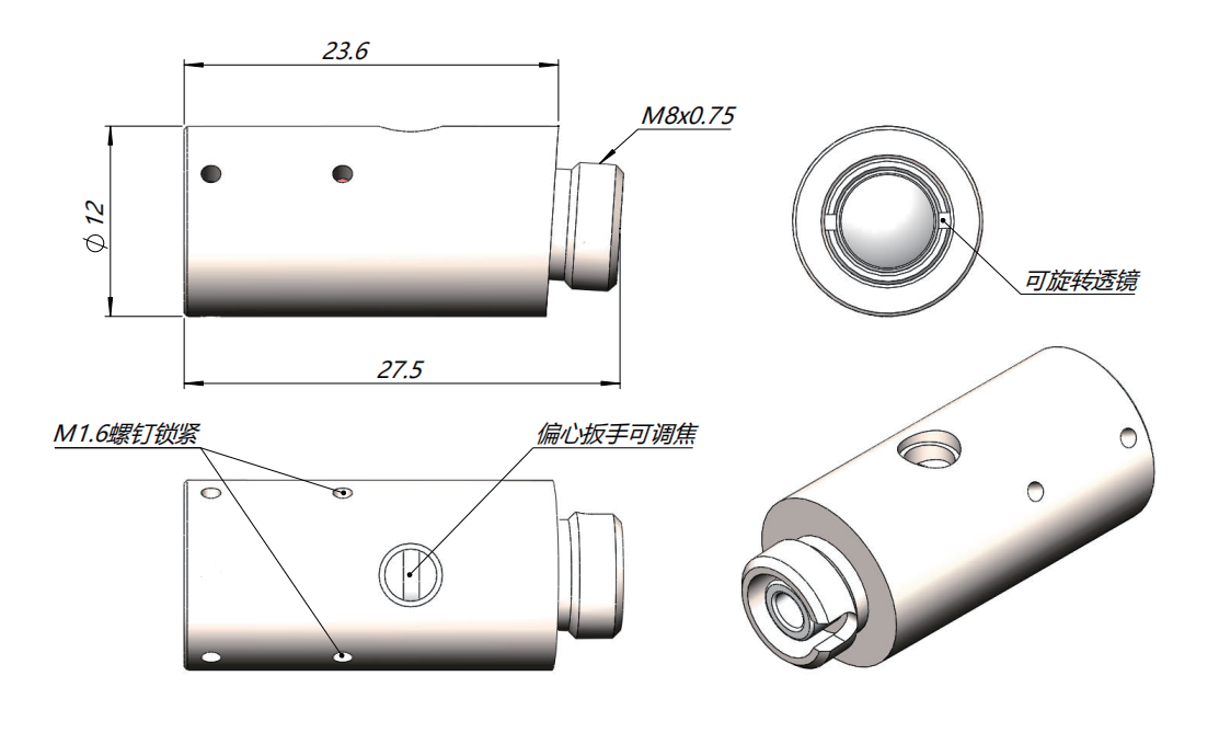 焦距可微调,进而调节透镜与光纤端面的距离,匹配最佳耦合效率。