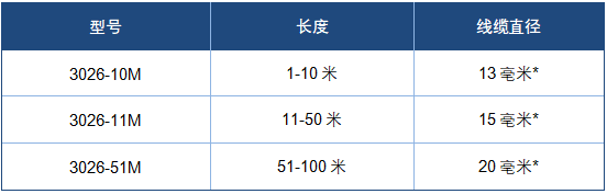 探头-电子单元:10米;可定制,含多路复用器的总长度最大100米。