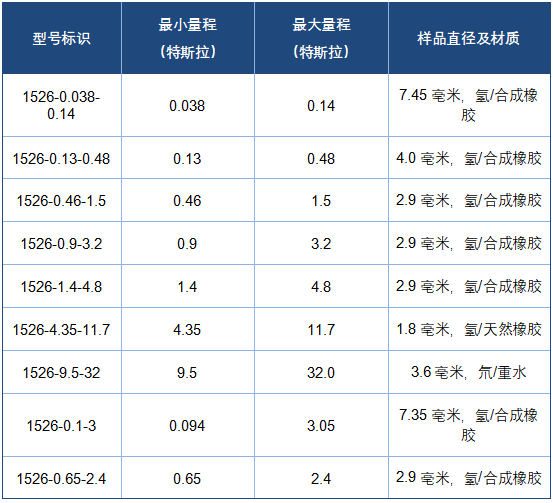 注:1526-0.1-3为专用探头,仅适用于磁场高度均匀的场景,如校准磁体。