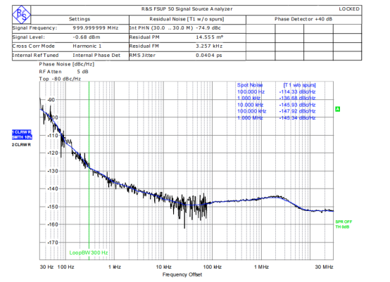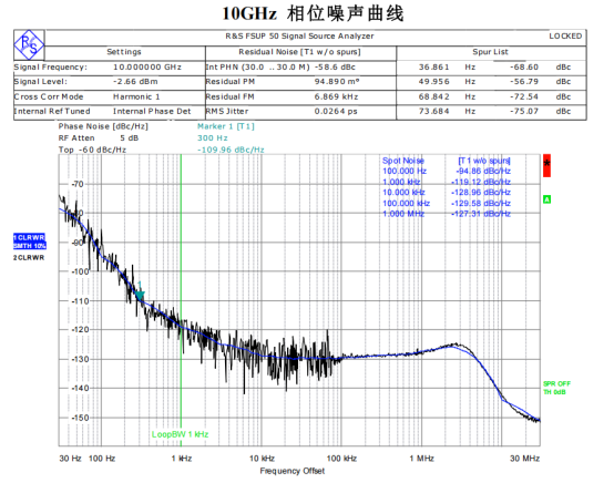 优异相位噪声(10GHz):-118dBc/Hz@1kHz,-126dBc/Hz@10kHz