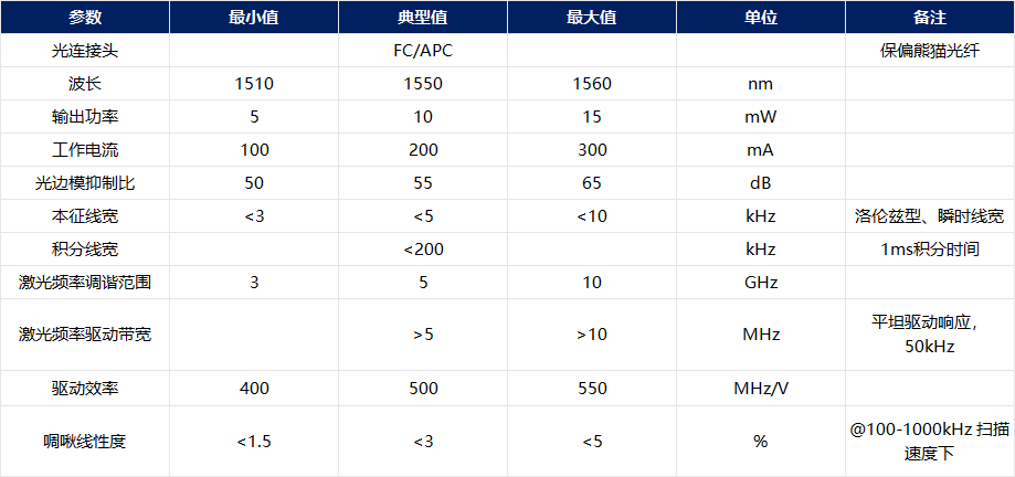 以下是典型DLT-FFT-1550设备的性能参数,不同设备的参数可能有所不同。