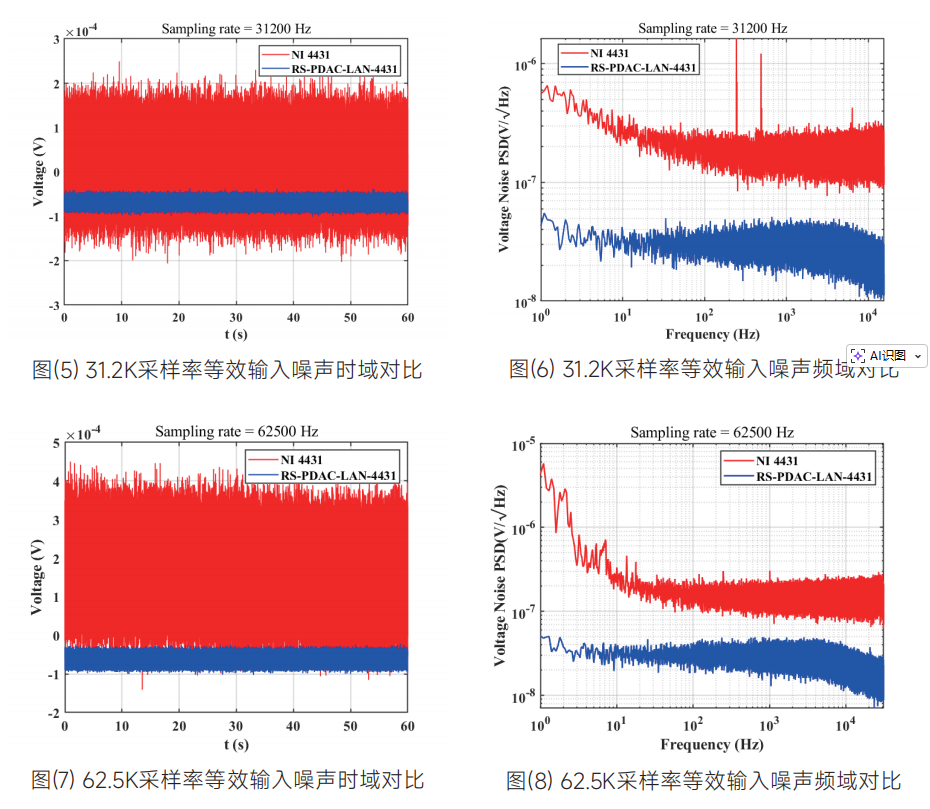 RS-LAN-4431与NI-USB-4431等效输入噪声对比结果: