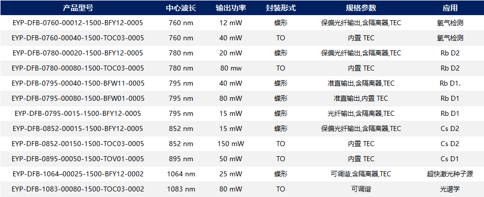 • 波长可覆盖Rb/Cs等常见原子谱线