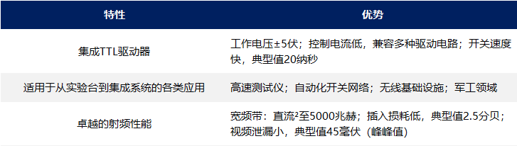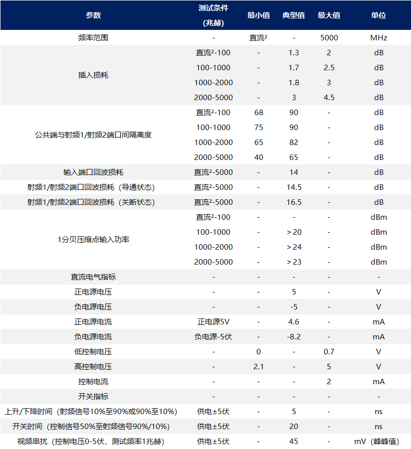 注:导通=低插入损耗状态;关断=高隔离度状态