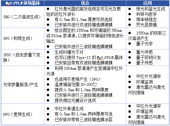 • 可提供从库存到定制设计的多种晶体,涵盖近紫外到中红外波长的生成