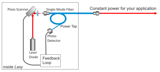 激光器内置单模光纤搭配功率分接器,可实时监测光纤中传输的光功率,通过智能反馈回路调节光束指向,支持两种工作模式: