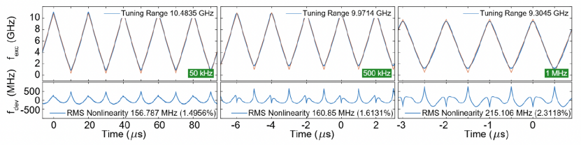 参数 最小值 典型值 最大值 单位 备注 光连接头 FC/APC 保偏熊猫光纤 波长 1510 1550 1560 nm 输出功率 5 10 15 mW 工作电流 100 200 300 mA 光边模抑制比 50 55 65 dB 本征线宽 <3 <5 <10 kHz 洛伦兹型、瞬时线宽 积分线宽 <200 kHz 1ms积分时间 激光频率调谐范围 3 5 10 GHz 激光频率驱动带宽 >5 >10 MHz 平坦驱动响应,50kHz 驱动效率 400 500 550 MHz/V 啁啾线性度 <1.5 <3 <5 % @100-1000kHz 扫描速度下