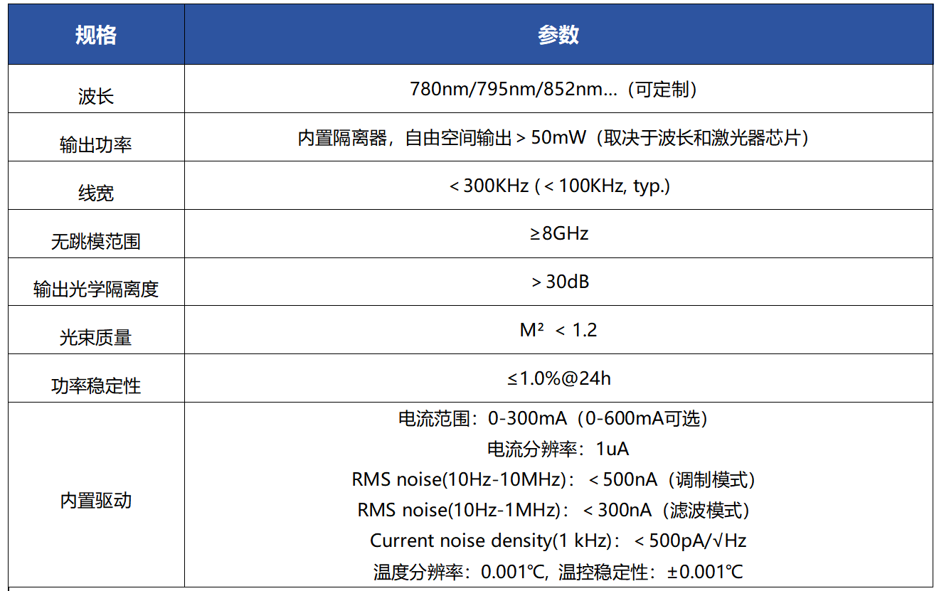 TR-LD-IceBrick(“小冰砖“)是一款窄线宽半导体激光器,内置了全数字化的超低噪声恒流源驱动和高精度温度控制器,仅需一路5V直流供电即可实现窄线宽半导体激光器的长期稳定运行。