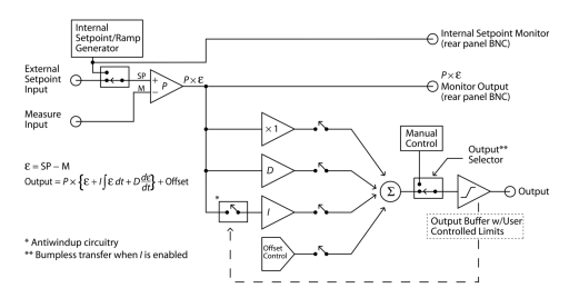 特点:带数字控制的模拟信号路径、 100 kHz带宽、 低噪音前端、 P、 I、D和偏移可设置为0.5%、 抗饱和(快速饱和恢复)、 无颠簸传输,手动至PID、 具有平滑斜坡的模拟设定点、 平稳的上下限夹紧