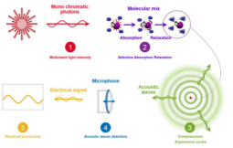 该一体化激光检测模块基于光声光谱技术,通过将光源、探测器、光声池,麦克风等关键部件集成到一个紧凑型模块中,可直接输出气体浓度值,大大降低了客户开发技术门槛和成本,可直接输出结果。由于采用了多芯片集成技术,该款检测模块可根据客户要求支持检测多种气体种类。