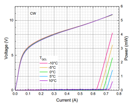 QCL 芯片工作温度(外壳温度在45℃) | 0-20℃ |
