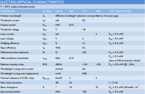 850 nm | VCSEL | bare die, FZP |