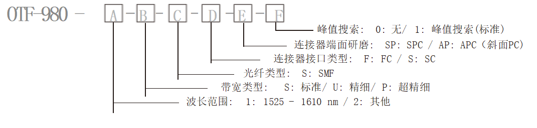 OTF-980是一款多功能可编程光学可调滤波器, 实现了C & L波段中心波长和带宽同时独立可调。 OTF-980采用新 型自由空间光学器件,结合超精细调谐机制,可确保精确 的滤波及控制平顶通带形状。根据传输带宽范围和不同斜 坡形状有三种版本可供选择。其中超精细款0.05 - 3nm带 宽可调,最陡滤波斜率可达1000 dB/mm。