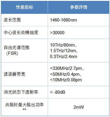 本产品基于专利技术及多年研发成果,核心为具有卓越性能的光纤基法布里 - 珀罗微腔。通过激光加工制成的反射镜,可实现极高的精细度(精细度 F>100000),凭借无可比拟的精度对特定波长进行滤波,最大程度消除干扰。这一突破性技术凭借出众的光学性能与控制能力,为各行业的创新发展提供有力支撑。