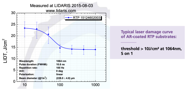 • 测试结果:增透膜 RTP 基板损伤阈值>10J/cm²