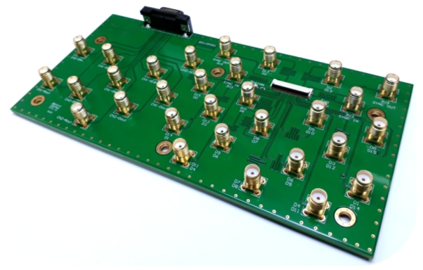 XSMA breakout板(如图所示)提供了便捷的SMA连接器,用于与该设备的多个通道进行接口连接。