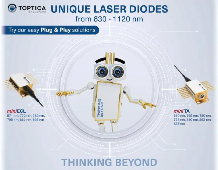 TOPTICA Eagleyard Unique Laser Diodes(630-1120nm),Mini ECL单频激光管与mini TA光放大器都是即插即用型设计,实现小型化和工程化,也兼具高稳定性与高性价比。也可在激光后端Covesion PPLN 波导激光变频器,完成光信号的高效采集与波长转换。