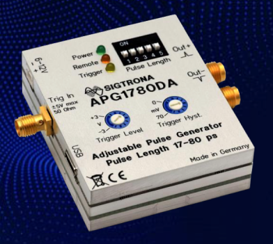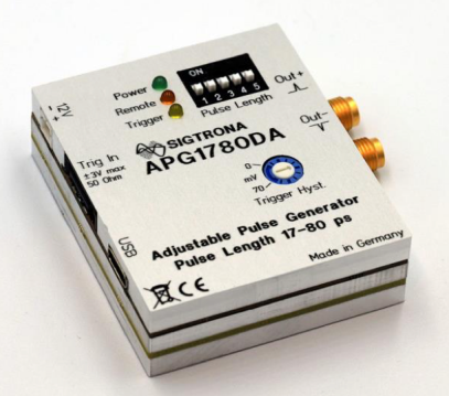 Sigtrona APG1780DA 系列是一款数字可调电子脉冲发生器,具备高精度脉冲控制能力。该系列包含两个型号:APG1780DA-SMA 采用单端触发输入,APG1780DA-DIFF 采用差分触发输入,可满足不同场景下的高速信号触发需求。设备支持独立操作与远程控制,体积紧凑且功耗低,适用于多种高精度测试与调制场景。