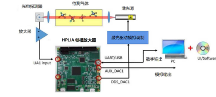 TDLAS用微型双通道调制解调锁相放大器是以当今FPGA +ARM单片机的业界主流配置而设计。浮点数数字信号处理的计算任务由 FPGA硬件加速完成,而结果数据采集和上位机交互由ARM单片机处理。为了提高性价比,系统以独立双输入输出通道为原则设计,从而在单板上实现双路锁相通道的应用。