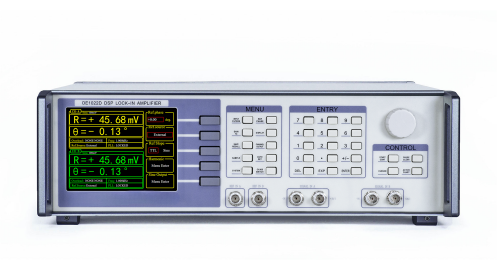 锁相放大器OE1022D中所采用的低噪声模拟前端放大器能够有效地处理差分信号或者单端信号,其等效输入噪声仅为5nV/√Hz。本通道的输入阻抗为10MΩ,在满量程输出时能够检测到的输入信号电平为1nV至1V。此外,OE1022D能够应用于输入电流信号的测量,其前端可变电流增益为106 或 108 V/A。OE1022D有两个独立的信号输入通道,满足用户多信号同时检测的需求。