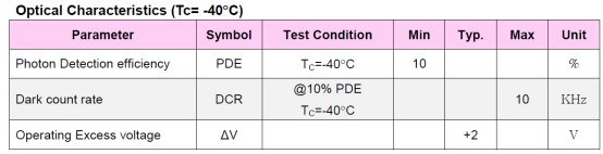 内置淬灭电阻(可选:360 kΩ/ 510 kΩ/ 680 kΩ/ 810 kΩ/ 1MΩ)