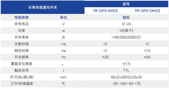 TR-OPS型开关模块,可以满足用户对光信号在特定指令下有效的快速关断或开启需求。本产品可实现对光信号的关断控制,减少由于光信号在特定时间下非正常输出引起的异常问题,可提高信噪比并能满足长期稳定工作的需求。