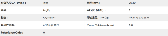 部分参数如下(中波红外(MWIR)和长波红外(LWIR)波片):