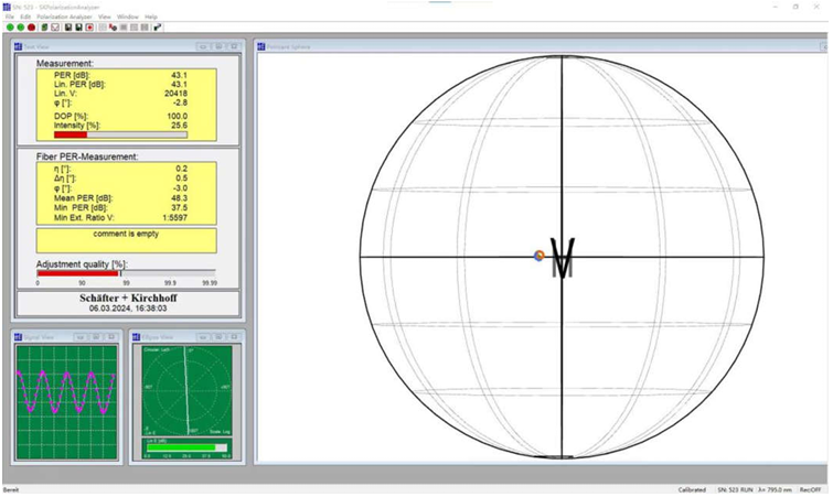 模块的内部通过波片组和空间分束/合束器件,再耦合进单模保偏光纤,整个光路采用高稳定的固定点胶的方式固定每一个光学元器件,模块在高低温和振动的复杂环境下,保持出色的偏振保持能力,每一个模块出厂均经过高低温和振动的条件下,实测每个模块的偏振消光比。