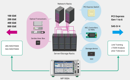 用于50G PON和100G/200G/400G/800G光传输模块、CEI-25G/28G/56G/112G、PCI Express Gen1 至 Gen6、USB以及高速互联等性能或协议测试