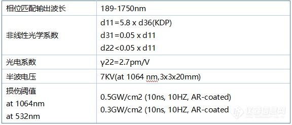 * 倍频转换效率高(相当于KDP晶体的6倍)