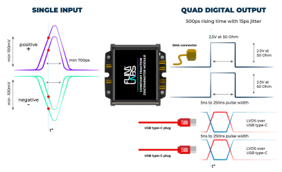 Ken本款恒比甄别器模块便携紧凑,可针对幅值可变、上升时间稳定的输入信号生成精准的数字时间戳。