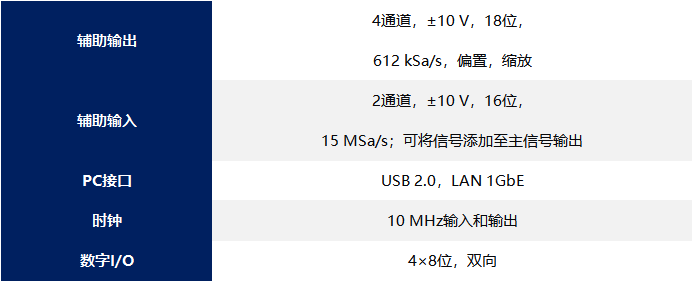 前面板上的 4 个辅助模拟输出的任何一个都可以单独设置比例缩放和偏置,612 kSa/秒的采样率确保所有解调信号分量都能在接口上可靠地使用。所有信号的带宽一致且高达 200 kHz。
