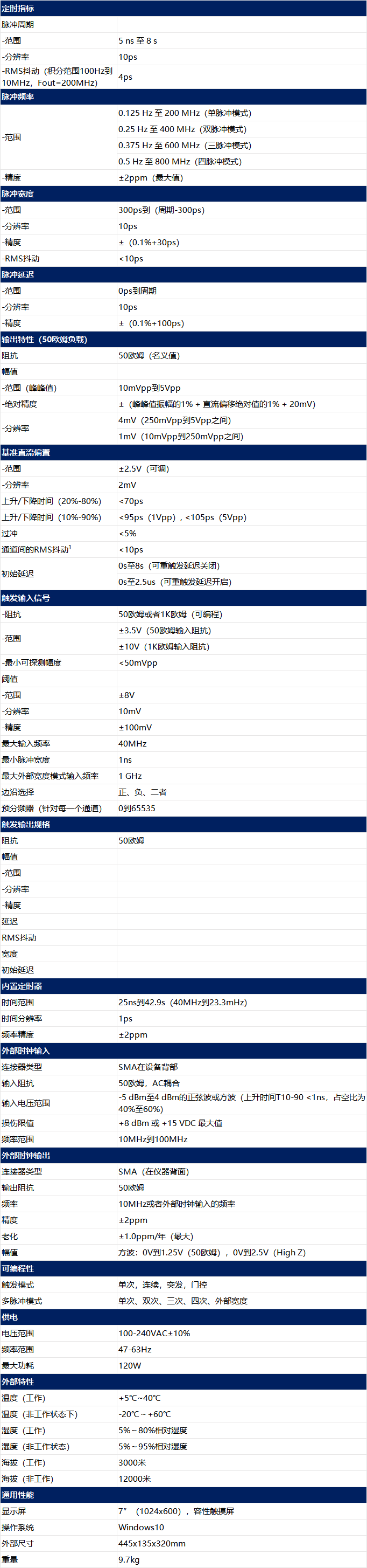 信号输出电压在+5V的范围内可调节至最高5Vpp,边缘速率为70ps。