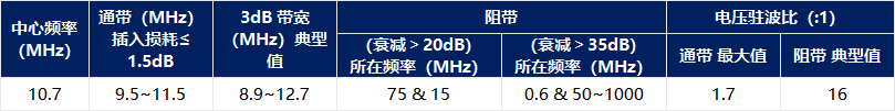 ▪ 良好选择性,典型 20 dB/3 dB 带宽比为 1.76