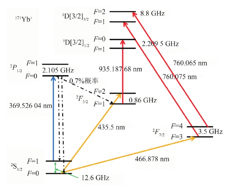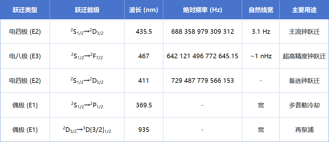 3、¹⁷¹Yb⁺离子光钟跃迁与波长总览表:跃迁与波长速览