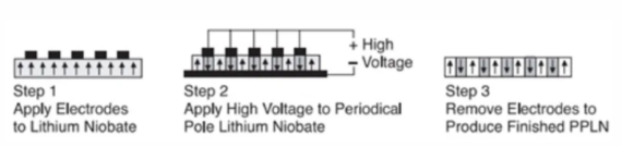 • 基于铌酸锂(铁电晶体),通过高压电场极化出周期性结构;