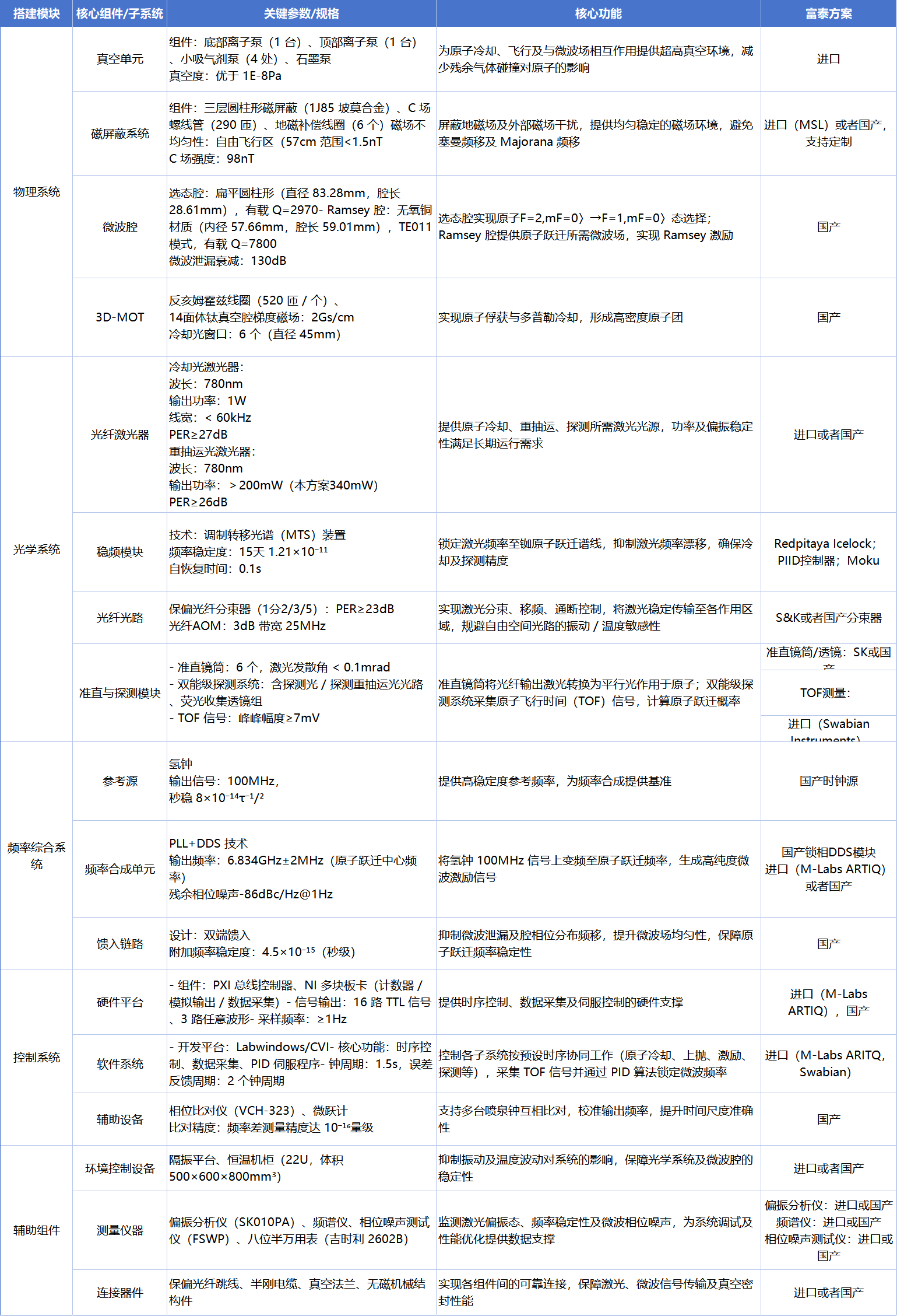 攻克全光纤光学系统集成技术,解决传统光学系统可靠性低、无间断运行时间短的核心痛点,提升铷原子喷泉钟的长期运行能力。