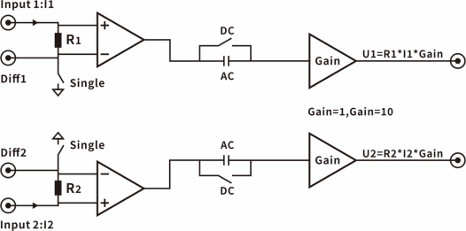 OE4102通过测量输入电流通道上电阻的压降来检测电流,放大并输出与被测电流成正比的电压信号。