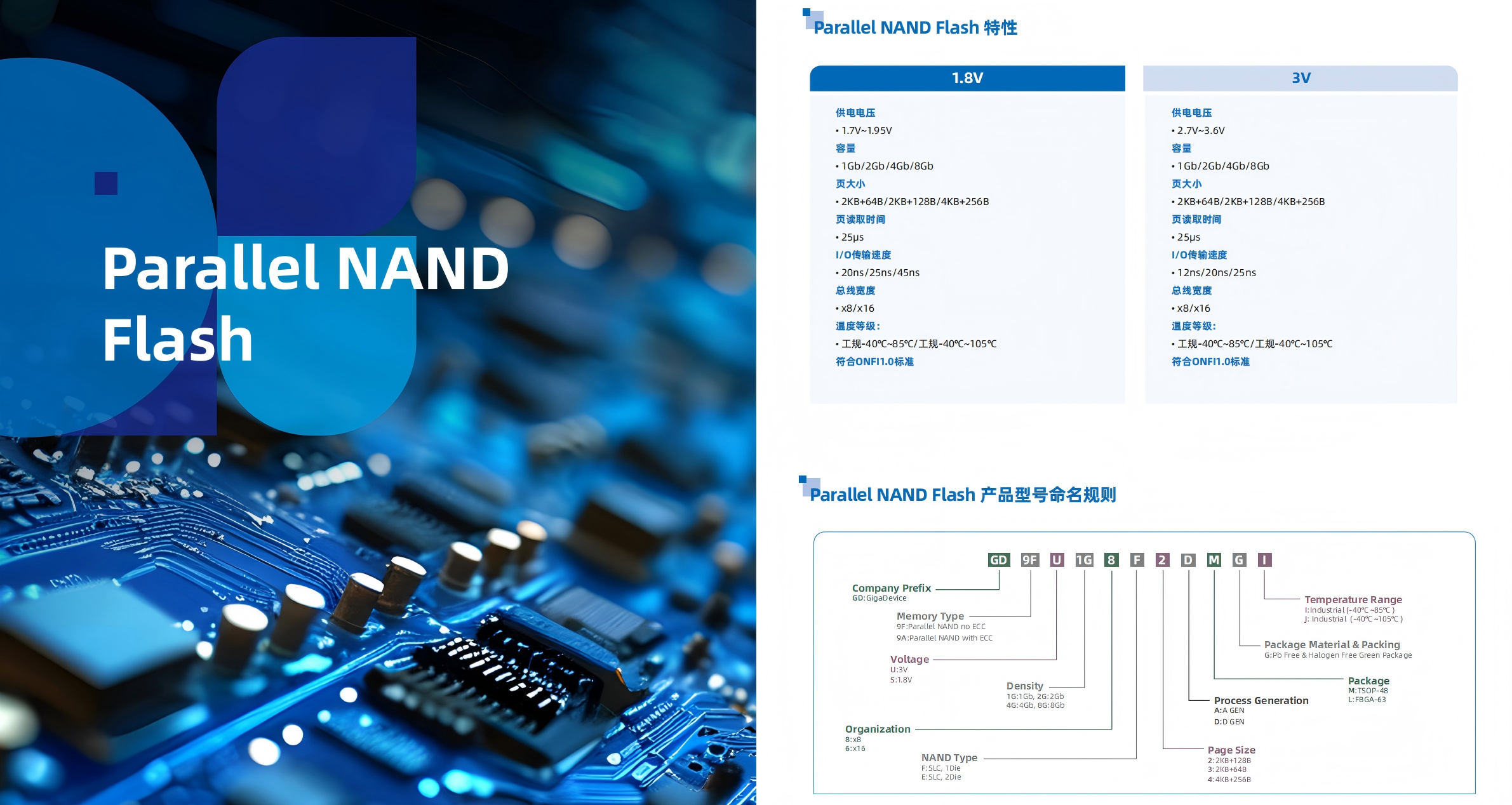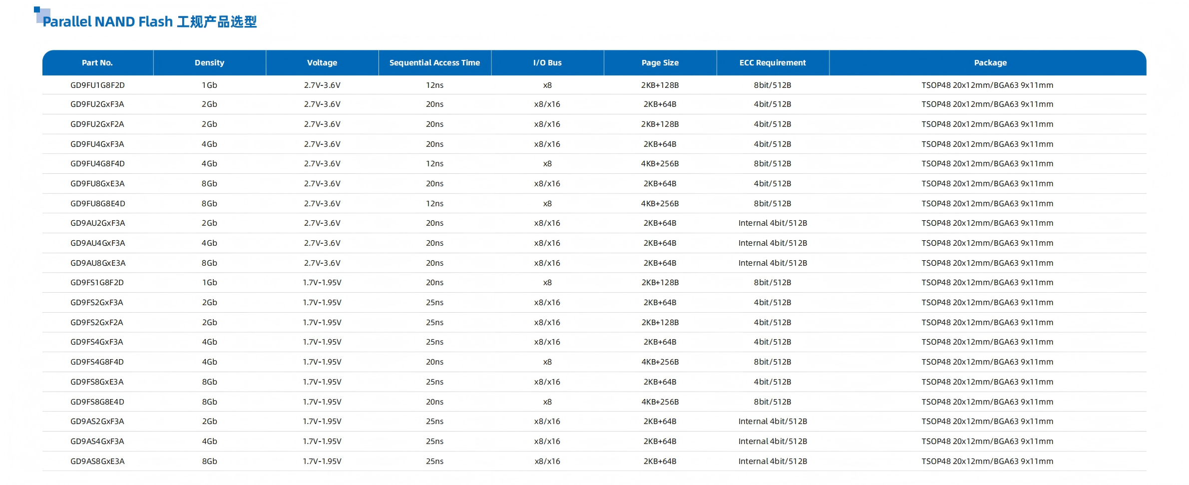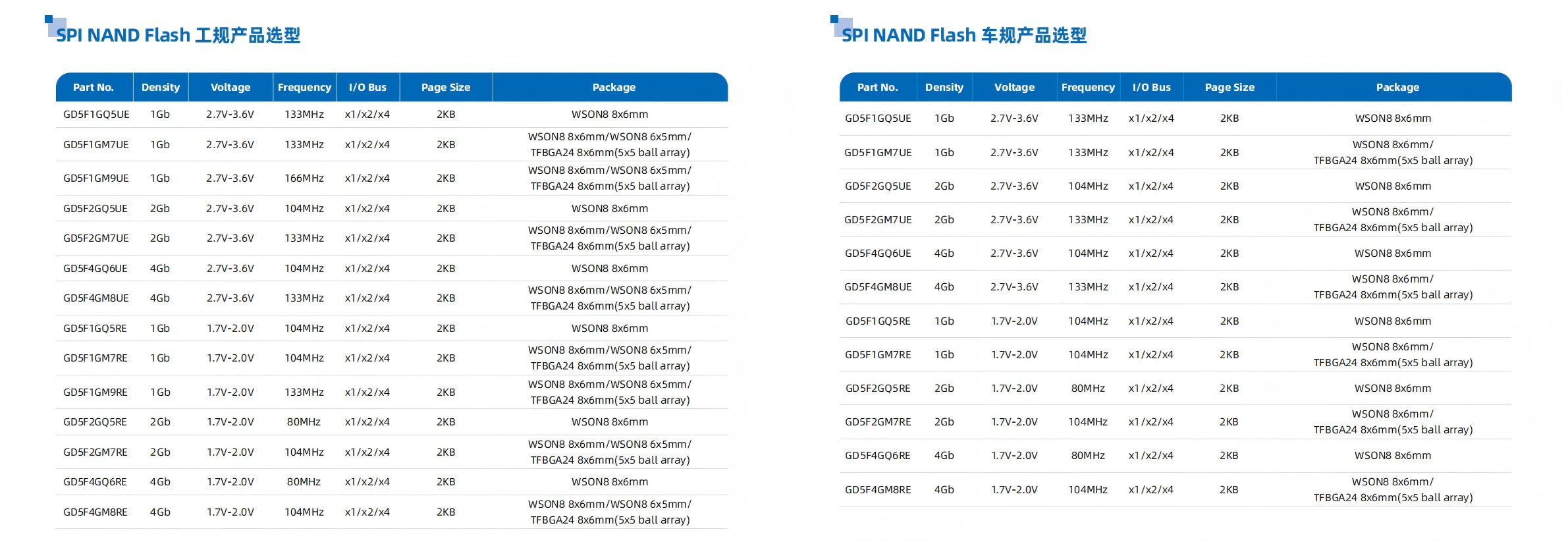 兆易创新的SPI NAND Flash内置可开关ECC模块,支持QSPI接口,具有高速,高可靠性,低功耗的特点。