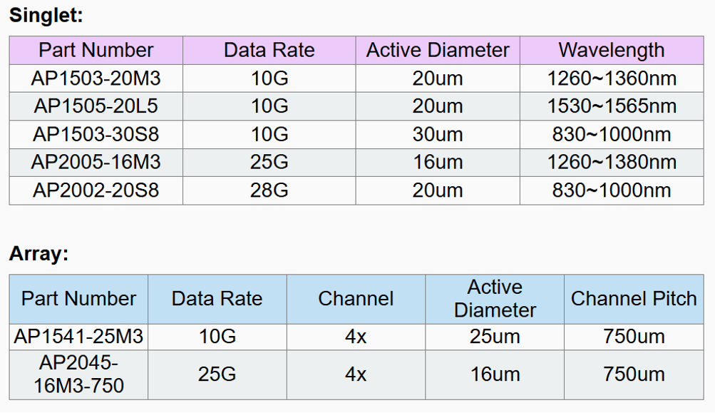 类别:首页>中文>产品中心>光通信产品>光通信材料>接收机芯片PD/APD>